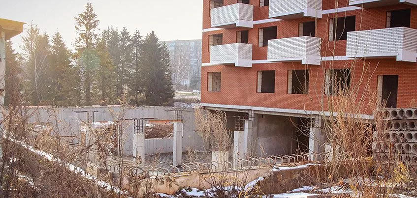 А вот соседнее здание, которое задумывалось как жилая 16-этажка, было в куда более безнадежном состоянии. Там работы выполнены на 30%: до 12 этажа возведен каркас дома, до 7-8 этажа – наружные стены, внутренние стены есть не везде, нет коммуникаций. По предварительным подсчетам, на завершение строительства дома необходимо более 200 млн рублей. У застройщика этих денег нет – счета несколько лет как арестованы. В отношении «Инвест-проект» идет процедура конкурсного производства – последняя стадия банкротства. В будущем компания будет ликвидирована, а недостроенный объект «Инвест-проекта» либо будет передан новому застройщику вместе с обязательствами перед дольщиками, либо реализован с торгов, а дольщики получат мизерное возмещение, несопоставимое с ценой квартиры.