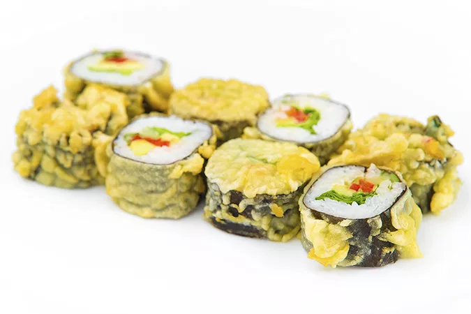 Сет «Темпура Голд» по праву можно назвать «золотой серединой» среди сетов. Это сочетание оптимального веса (810 г), экономичной цены (420 рублей) и вкусовых предпочтений любителя японской кухни и сторонника европейского питания. Сытная находка для любителей классических роллов - горячая «Филадельфия», для тех, кто любит пробовать что-то новое – ролл «Острый с крабом» и горячий ролл с курицей.