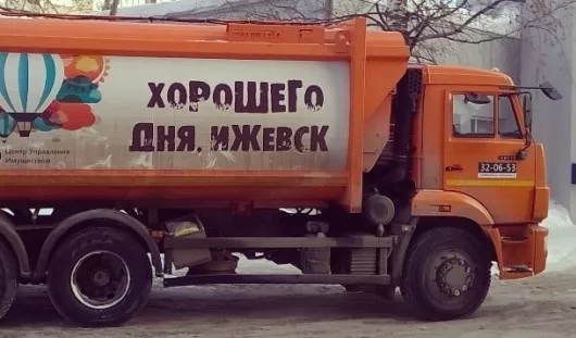В понедельник утром, 16 марта, ижевчане заметили автомобиль одной из городских служб города с надписью, желающей хорошего дня. Ее прикрепили на кузов одного из КамАЗов компании.