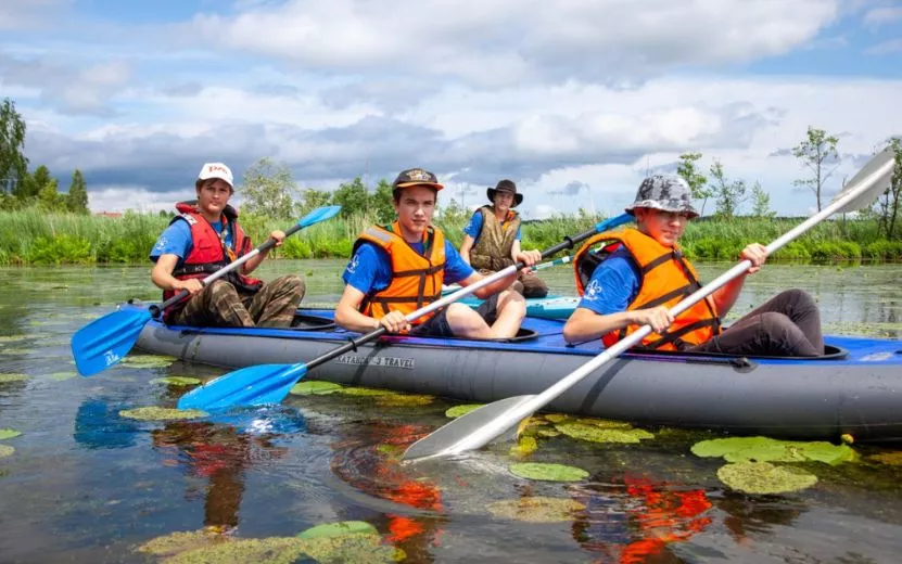 Пока ходим по лагерю, не замечаем никого, кто сидел бы в телефоне. Почему? Гаджеты здесь запрещены. Да и времени «позалипать» в соцсетях нет: весь день забит различными активностями. За два дня дети пробуют и вязать узлы, и добывать воду в сложных условиях, и участвовать в кулинарном мастер-классе, учатся сортировать мусор, играют в водный футбол, катаются на байдарках, катамаранах, сапсерфах и многое другое.