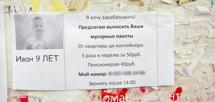 На одном из домов по улице Ворошилова появилось необычное объявление. 9-летний Иван предложил жителям дома выносить мусорные пакеты от квартиры до контейнера за деньги. У ижевчан мы спросили, а где они получили свой первый заработок.