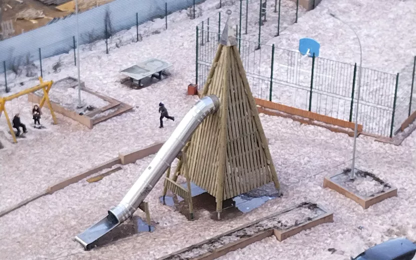 UPD: В комментариях к посту о розовом снеге директор «Ижевского завода кирпича и керамзита» Василий Мартынов заметил, что «снег грязный с оттенком красного еще январский лежит только с северной части домов Баранова 92б и 92а. С других трех сторон зеленый грязный газон, как в любом дворе весной».