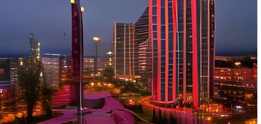 Неоновые высотки, внизу что-то похожее на роллердром. Возможно, так будет выглядеть Центральная площадь Ижевска в 2031 году.