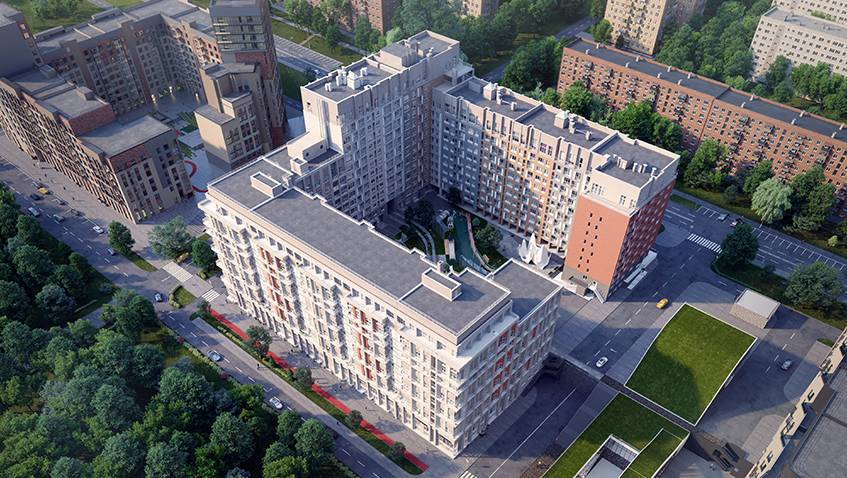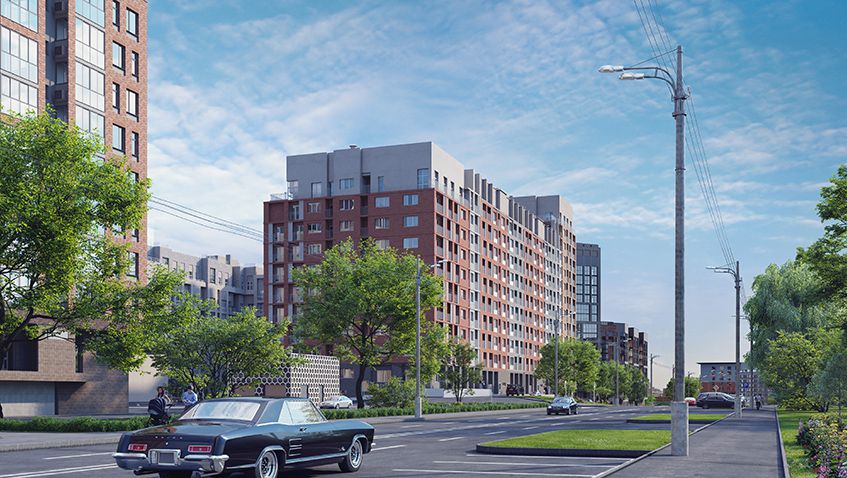 Минималистичный стиль, четкие линии и аккуратные формы. Благородный серый и приглушенный красный в отделке фасадов близки к природным оттенкам. Лаконичная геометрия квартала не спорит с окружающей средой, а дополняет ее. Простота фактур словно подчеркивает: главное - внутри, а не снаружи.