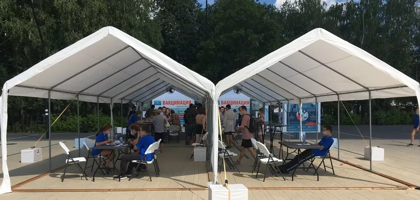 Пункт продолжает работу и на этой неделе. Двери открыты ежедневно с 08:00 до 21:00 (перерыв – с 15:00 до 15:30). Первый компонент вакцины можно получить в фойе театра оперы и балета, второй – в палатках напротив.