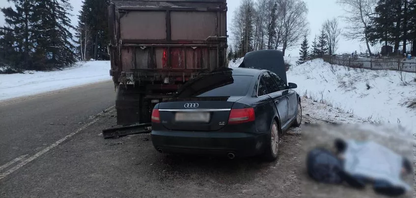 По предварительным данным, водитель автомобиля Audi A6 – мужчина 1984 г.р., двигаясь в сторону Игры, врезался в стоящий на проезжей части «КамАЗ» с полуприцепом.