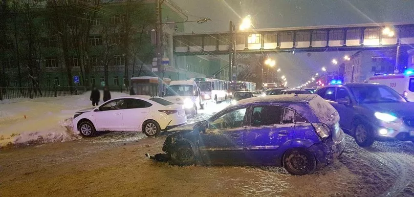Накануне, 20 февраля, массовая дорожная авария произошла на ул. Удмуртской, прямо около УдГУ. Как сообщает 1-й отдел УГИБДД по Удмуртии, около 19:30 здесь столкнулись три легковых автомобиля.