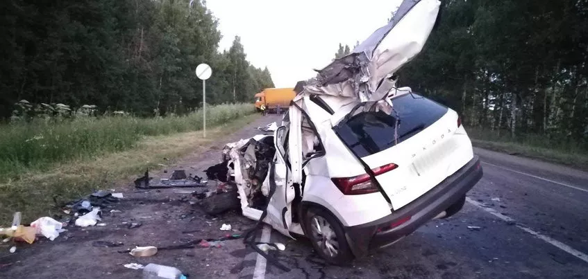 В минувшую пятницу, 3 июля, дорожная авария произошла на 41 км трассы Ижевск – Воткинск. Как сообщает 1 отдел УГИБДД по Удмуртии, около 23:45 63-летний водитель «Шкоды» не справился с управлением, выехал на встречную полосу, где столкнулся с грузовиком MAN.
