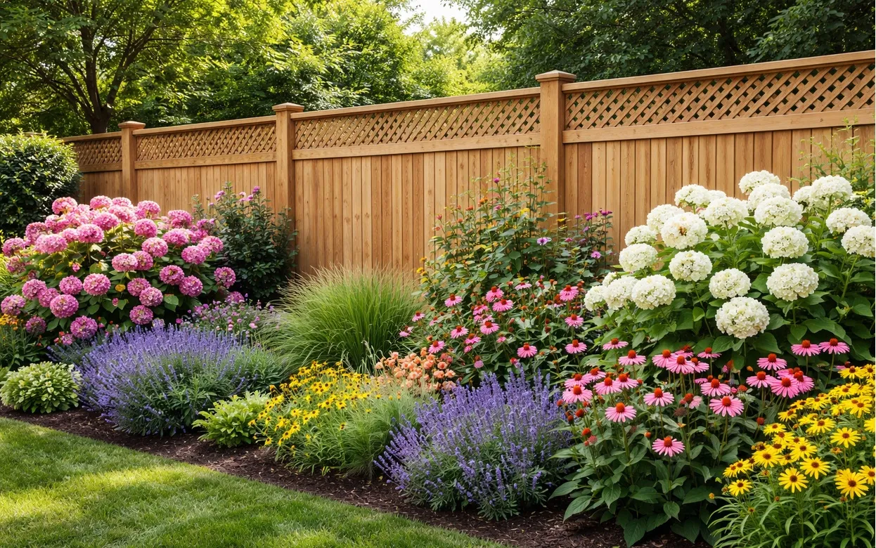 Если нужно озеленить забор за один сезон, то девичий виноград справится с этой задачей лучше любого другого растения. За лето он дает приросты до двух-трех метров и крепится к поверхности самостоятельно, без подвязки. Осенью листья окрашиваются в пурпурный и багряный, превращая самый обычный сетчатый забор в пеструю живую стену.