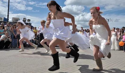 12:00-12:30 - церемония открытия проекта «Марафон невест», массовый флеш-моб - танец невест, запуск в небо воздушных шаров.