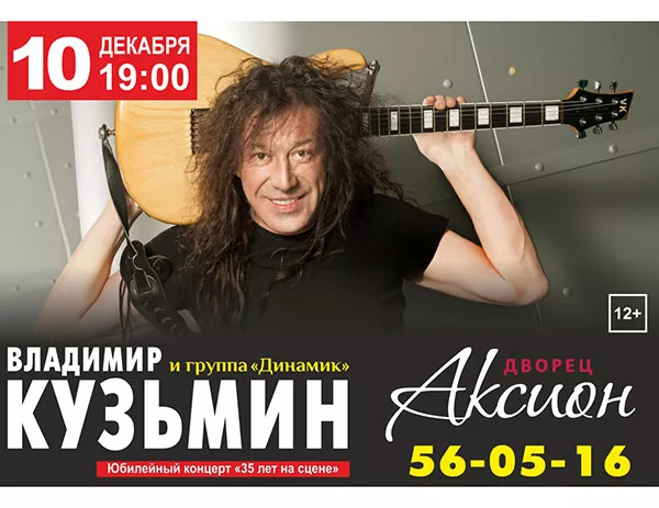 10 декабря на сцене ДК «Аксион» выступит легенда русского рока, автор 28 сольных альбомов и двух в составе группы «Динамик» Владимир Кузьмин.