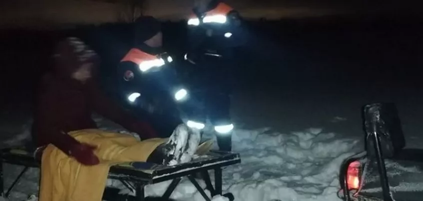 При помощи снегохода женщину доставили домой.