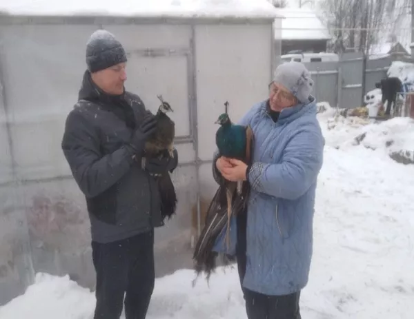 Птицы начали замерзать, но прибывшие спасатели поднялись на крышу дома и сняли павлинов. Затем они вернули их хозяйке.
