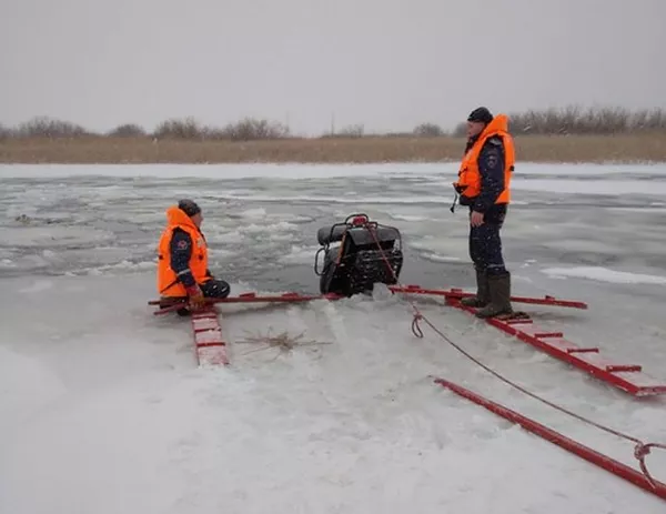 Как говорится в сообщении, отправившись на рыбалку, мужчины выехали на то место реки, где вода практически не замерзает. Трое мужчин успели спрыгнуть, когда снегоход начал тонуть под треснувшим льдом. Самостоятельно достать транспортное средство было невозможно, поэтому на помощь пришли спасатели.