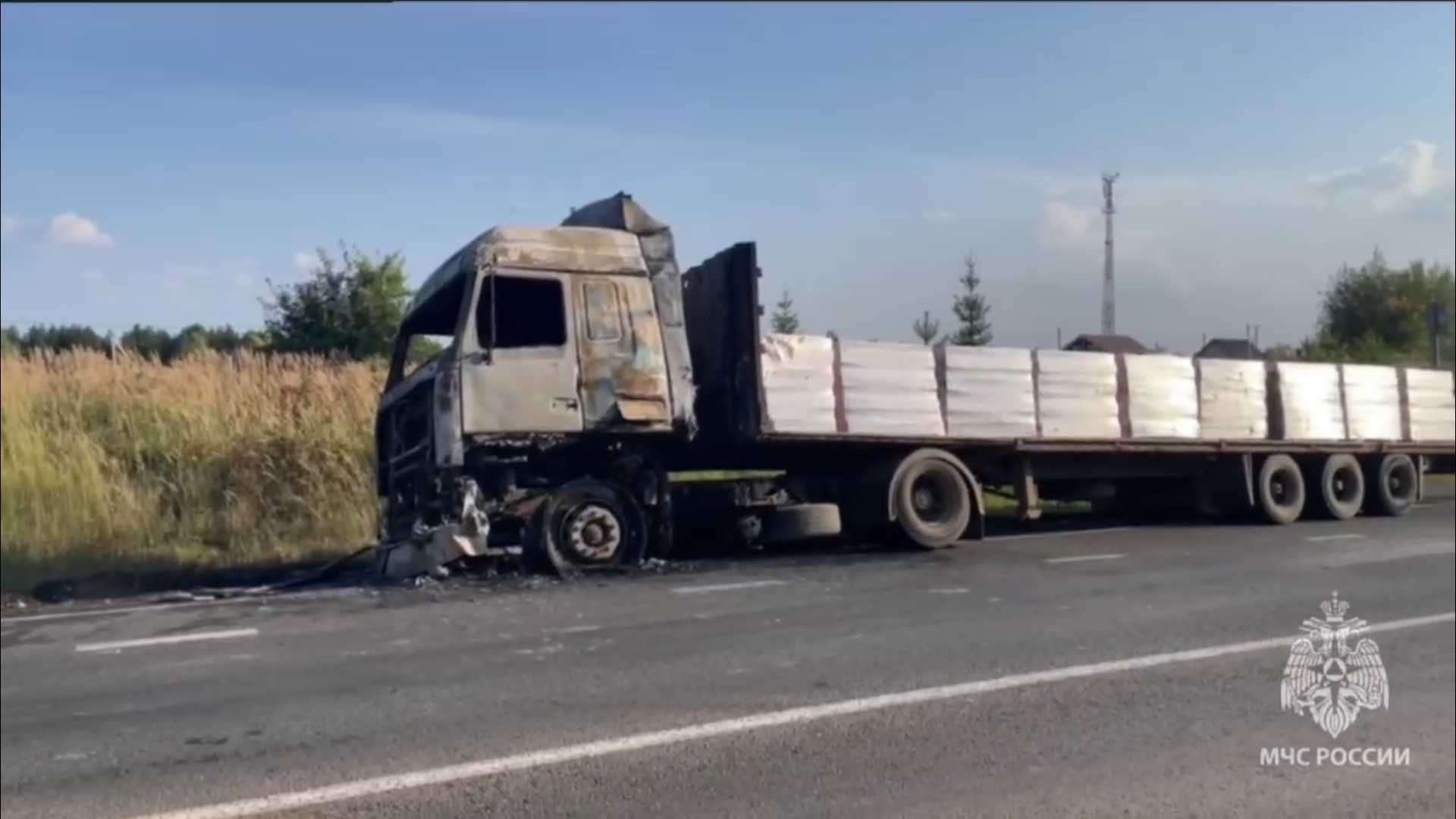 По информации ведомства, водитель вместе с свидетелями происшествия пытались потушить пожар огнетушителями, но огонь полностью охватил кабину. В результате пожарные потушили возгорание и не дали ему перейти на прицеп, в котором перевозили поддоны с кирпичами.