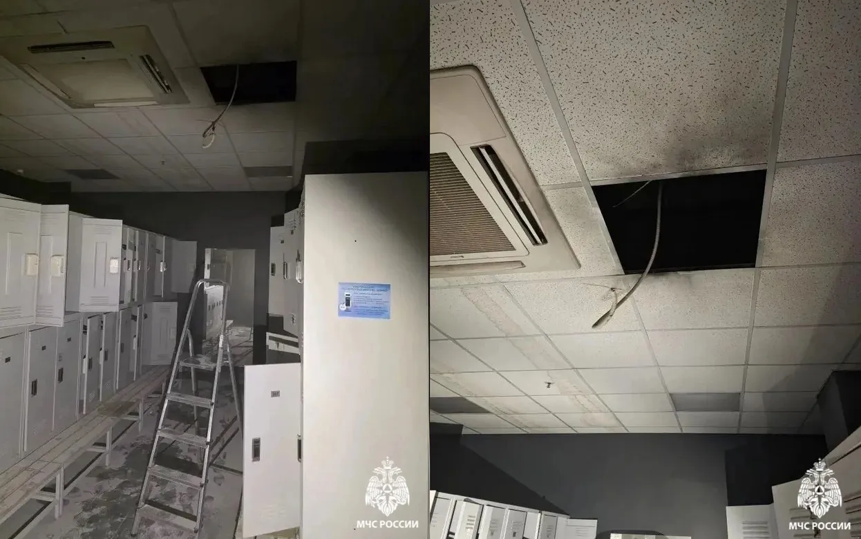 По уточненным данным, загорелась светодиодная лампа в женской раздевалке. Причина — аварийный режим работы лампы.