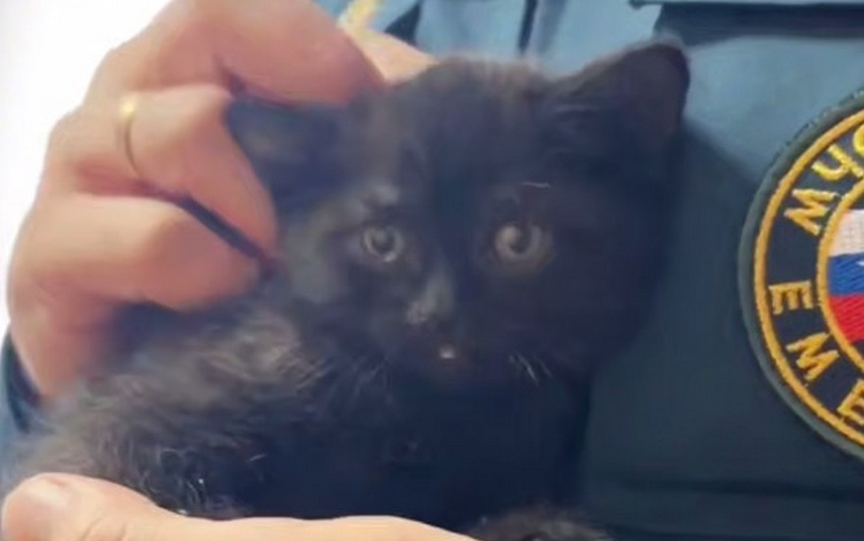 В столице Удмуртии пожарные во время ликвидации возгорания в заброшенном доме спасли маленького черного котенка, сообщает пресс-служба ГУ МЧС по региону.