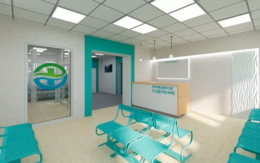 В помещении появятся стойка регистрации, просторный зал ожидания, светодиодная вывеска с торца здания. Чтобы было удобнее перевозить пациентов на каталках, установят ветрозащищенную конструкцию с дверями маятникового типа.