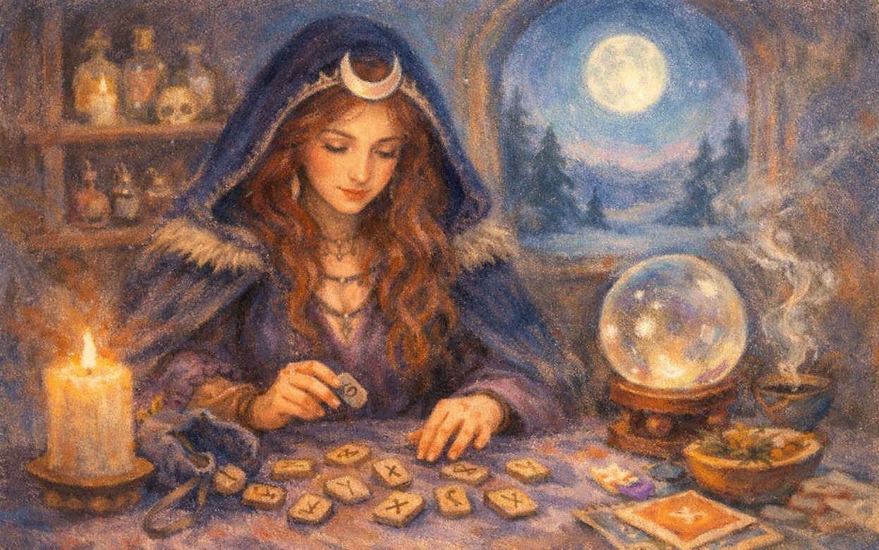 Выключите лишние звуки, уберите телефон в сторону, сделайте несколько спокойных вдохов. Чем чище внутренняя тишина, тем точнее отклик рун.