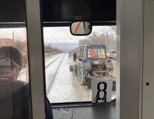 А на улице Кирова из-за снега ненадолго встали трамваи: не было движения в центр. Как сообщает корреспондент IZHLIFE с места событий, движению помешал трактор: у него сел аккумулятор.