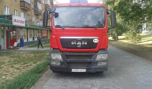 - Фура встала, похоже, только на разгрузку, а брусчатку жалко - уделают быстро такие махины!