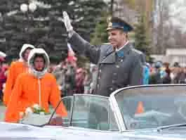 В Ижевске завершилась праздничная демонстрация, посвященная  празднику весны и труда. Жители были в восторге от артиста, который играл роль Юрия Гагарина и проехал по центральной улице в кадиллаке с открытым верхом. <фоторепортаж>