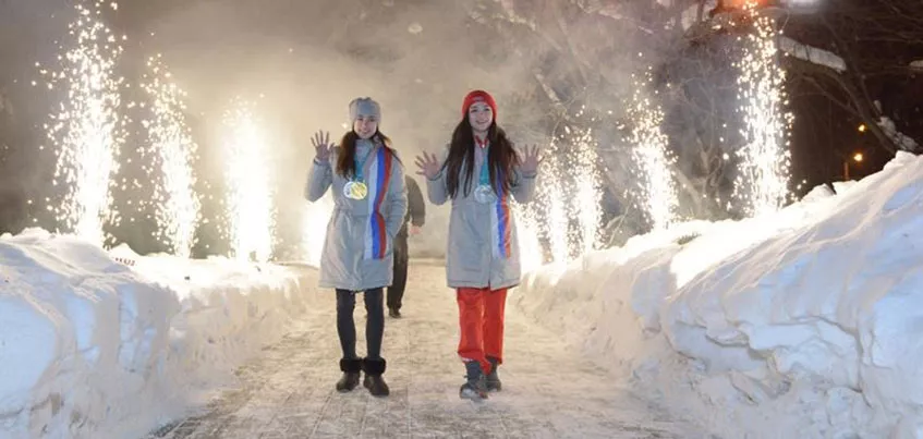 Торжественная встреча прошла сначала в аэропорту, куда приземлился самолет со спортсменками, после чего ижевчанка Алина Загитова и Евгения Медведева отправились на каток «Хрустальный», где и готовились к победоносным выступлениям на Олимпиаде в Пхенчхане.