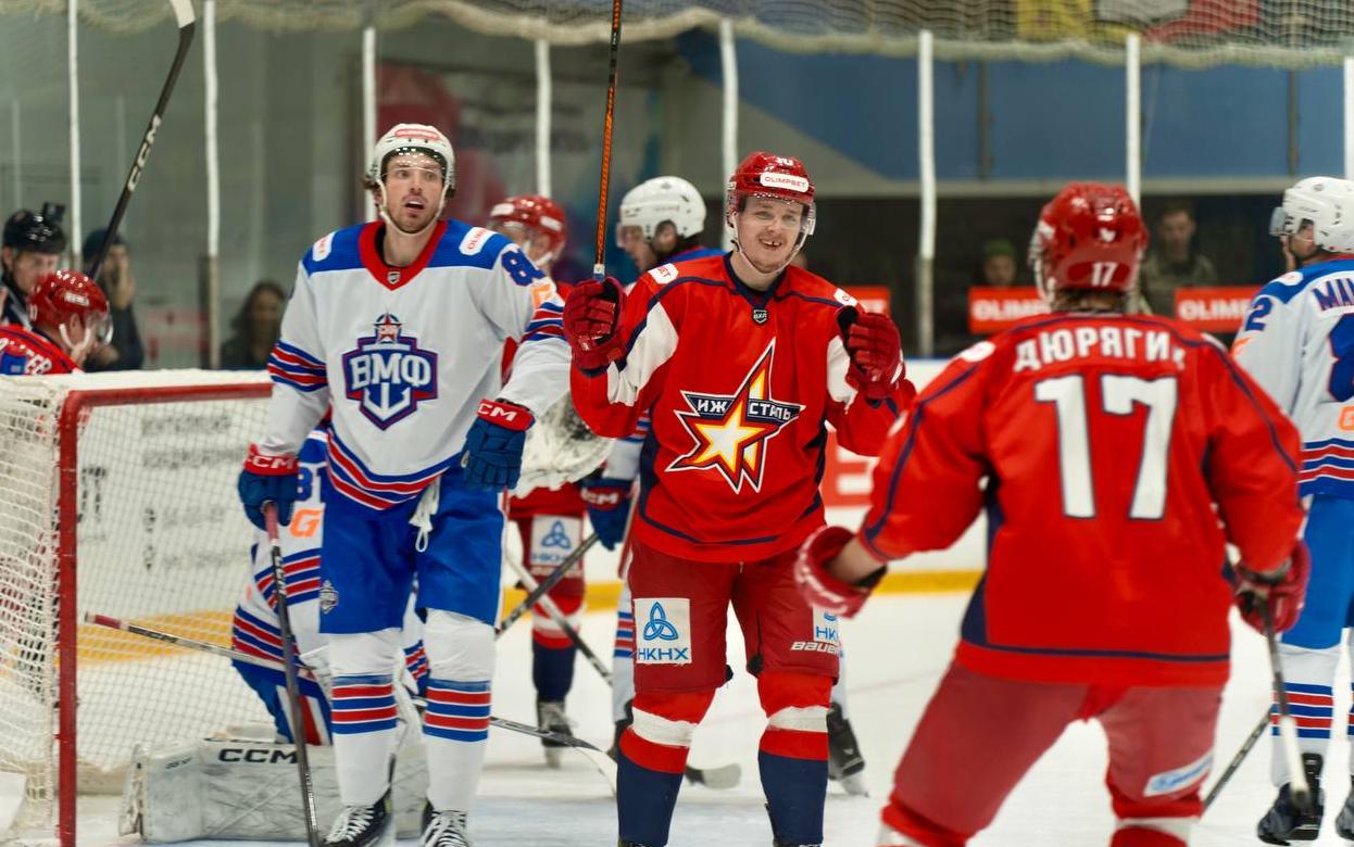 25 октября в столице Удмуртии прошел матч очередного тура регулярного чемпионата Всероссийского хоккейной лиги. Местная «Ижсталь» разгромила СКА-ВМФ из Санкт-Петербурга.