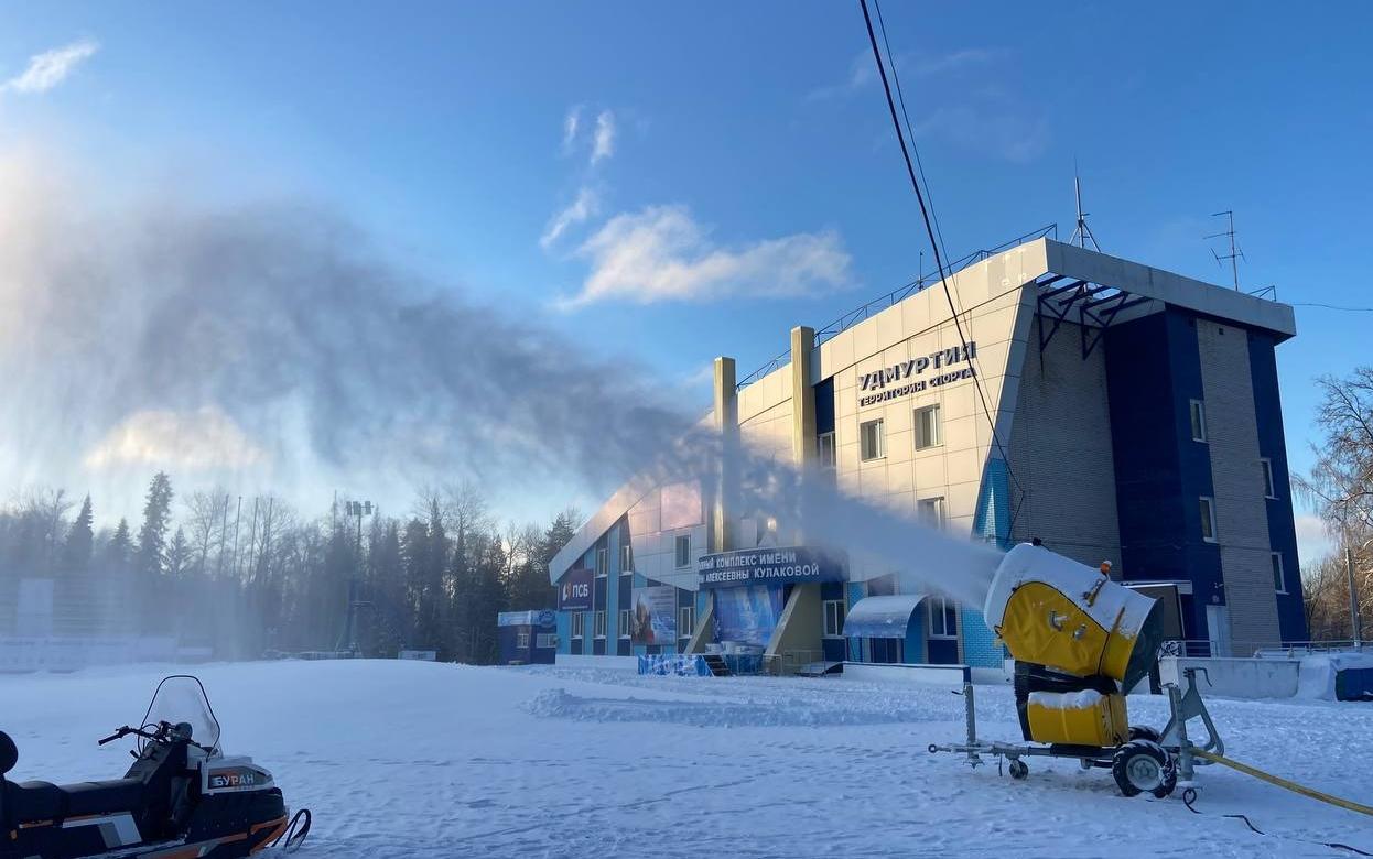 Чтобы соревнования состоялись вне зависимости от обилия осадков, сразу на трех спорткомплексах республики (СОЛК им. Кулаковой, РССК им. Демидова и ГК «Чекерил») началась заготовка снега при помощи специальных пушек, сообщает пресс-служба Главы и правительства Удмуртии.