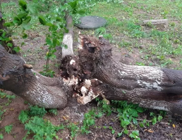 Порывы ветра до 15-20 м/с привели к тому, что горожане выкладывают в соцсети снимки поваленных деревьев.