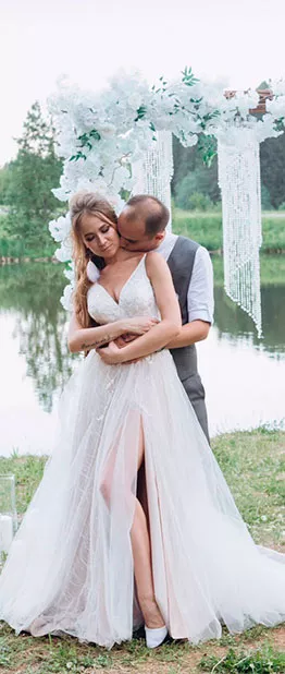 К свадьбе готовились около 6 месяцев. Цветами торжества стали белый и пудровый, которые отлично сочетались с зеленью – у ребят была выездная регистрация.